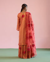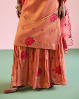 Fabrics: Kurta: tissue chanderi, sharara: tissue chanderi, dupatta: organza