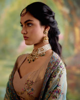 Fabrics: lehenga: chanderi , blouse: chanderi tissue, dupatta: organza tissue.