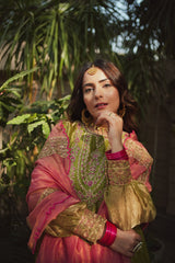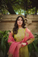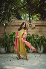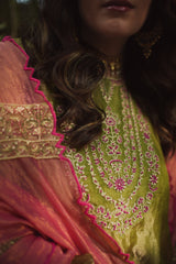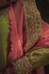 JOR BAAGH SOFT GREEN & HOT PINK SET OF 3( kurta, pant & dupatta)
