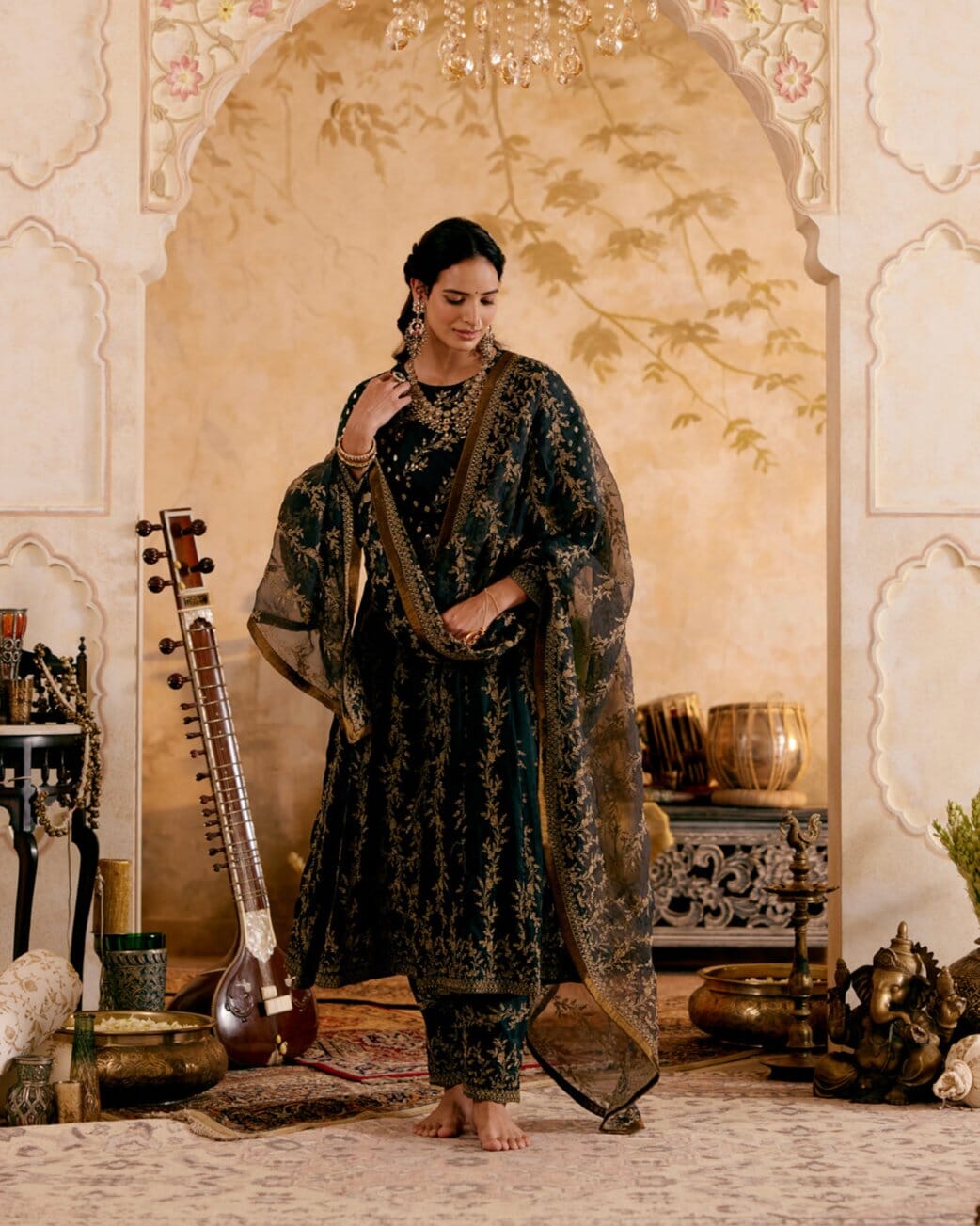 adaptability ensures that it can be worn at multiple events by simply switching accessories and dupattas.