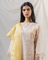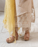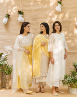 Fabrics:Â Â Kurta: Fine cotton Chanderi, Pant: Cotton, Dupatta: Organza