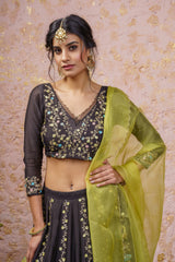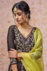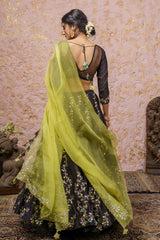 Black Lehenga Set With Yellow Dupatta