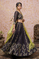 Black kalidar zari embroidered lehenga with with blouse and dupatta