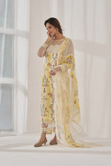 Fabrics: Kurta: fine cotton chanderi, pant: cotton, dupatta: organza