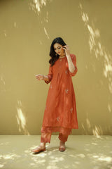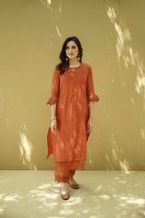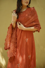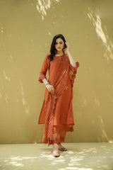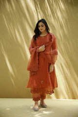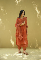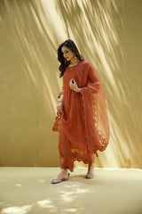 goonj(ginger) -set of 3- kurta, pant & dupatta - Naaz By Noor
