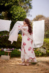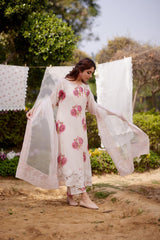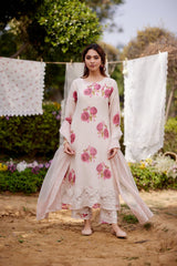 PINK ROSE fields- set of 3 ( kurta, pant & dupatta) - Naaz By Noor