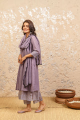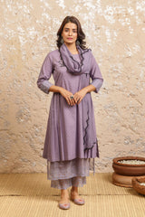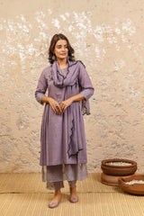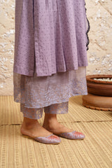 Embroidered motif on kurta with organza embroidered hem, pants and sleeves, thread scallop on dupatta