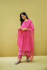goonj( hot pink)- set of 3- kurta, pant & dupatta - Naaz By Noor