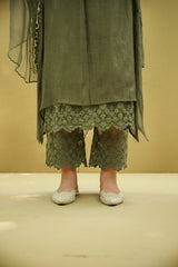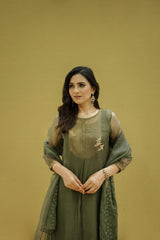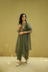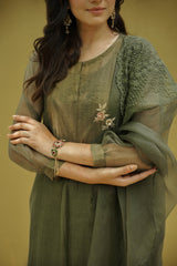 goonj (moss green)- set of 3- kurta, pant & dupatta - Naaz By Noor
