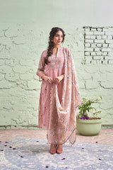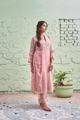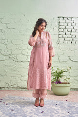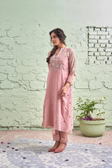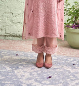 JAMUN ki tokri ( halki gulabi)- set of 3- kurta with embroidered buds, pant & dupatta - Naaz By Noor