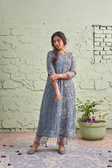 JAMUN ki tokri ( neela sa Sleti)- set of 3- kurta, pant & dupatta - Naaz By Noor