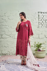 JAMUN ki tokri (gehri laal)- set of 3 - kurta, pant & dupatta - Naaz By Noor