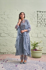 JAMUN ki tokri ( neela sa sleti)- set of 3 - kurta, pant & dupatta - Naaz By Noor