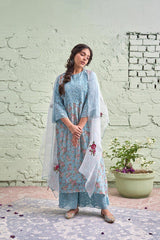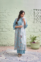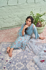 JAMUN ki tokri ( neeli)-set of 2- thread embroidered kurta & pant - Naaz By Noor