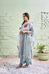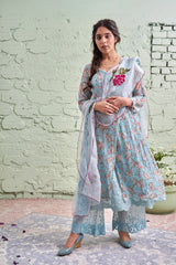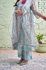 JAMUN ki tokri ( neeli)-set of 3- printed kurta, pant & dupatta - Naaz By Noor