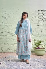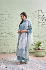 JAMUN ki tokri ( neeli)-set of 3- thread embroidered kurta , pant & dupatta - Naaz By Noor