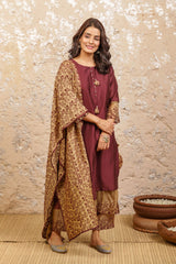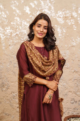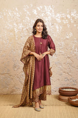 Kurta with tassels and button with organza detailing on hem, pants and sleeves, all over embroidered dupatta