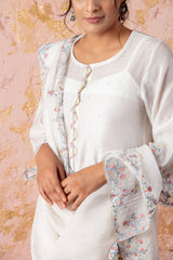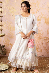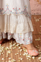 Ivory embroidered Kurta With Scalloped Sharara And Dupatta