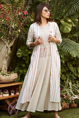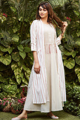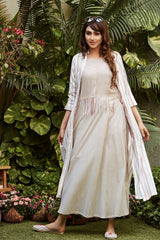 White Printed Cape With Dress