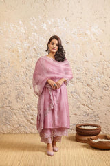 Old Rose Embroidered Kurta With Pants And Dupatta - Naaz By Noor