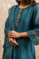 Embroidered detailing on the neck of the kurta, detailing on pants, sleeves and hem and paired with dupatta