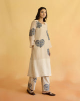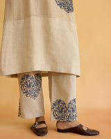 Fabrics:Â KURTA: fine cotton chanderi, PANT: cotton & linen