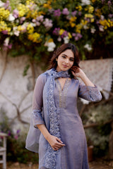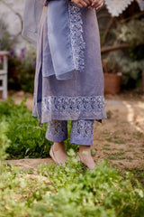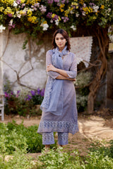 BLUE BUTTERFLY BLUSH fields- set of 3 ( kurta, pant & dupatta) - Naaz By Noor