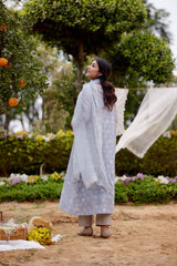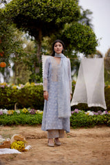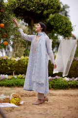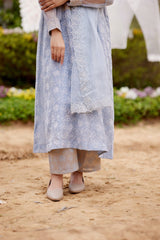 BLUE HIMALAYAN POPPY fields-set of 3(kurta, pant & dupatta) - Naaz By Noor