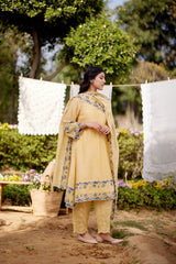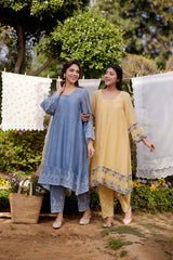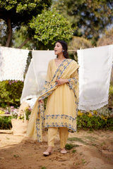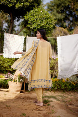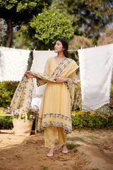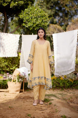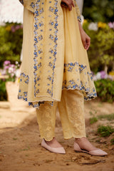 LEMON MERINGUE fields-set of 3(A- line kurta, pant & dupatta) - Naaz By Noor
