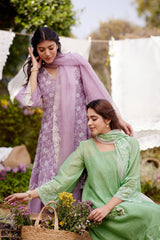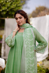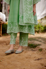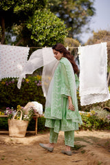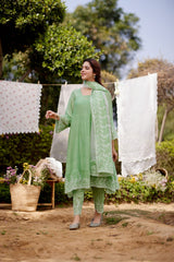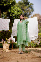 GREEN CALLA LILY-set of 3 ( A-line kurta, pant & dupatta) - Naaz By Noor