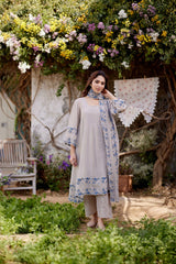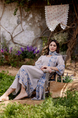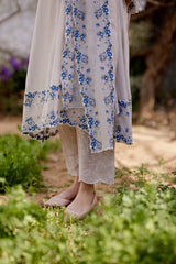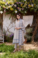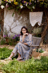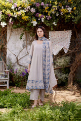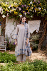 GREY IRIS fields- set of 3 ( A- line kurta, pant & dupatta) - Naaz By Noor