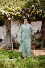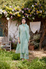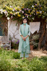 ROSA GREEN fields- set of 3 ( kurta, pant & dupatta) - Naaz By Noor