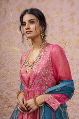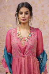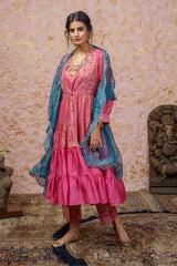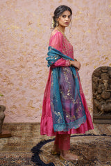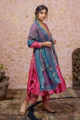Fuchsia Kurta Set With Bluesteel Dupatta