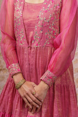 Fuchsia jaal embroidered kurta on bodice paired with scallop dupatta and pants
