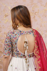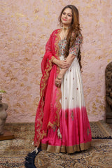 Ombre anarkali embellished with intricate threadwork, paired with scallop dupatta
