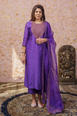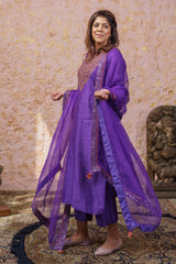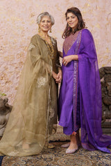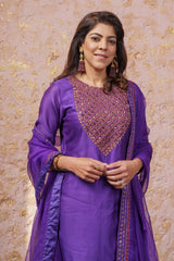 Royal purple kurta set, embellished with antique sequins on neck paired with embroidered dupatta