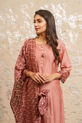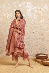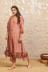 Kurta with tassels and button with organza detailing on hem, pants and sleeves