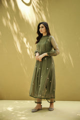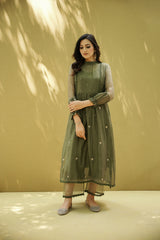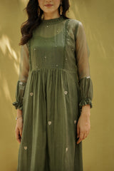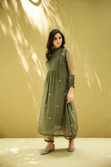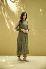 goonj(moss green)- set of 2- kurta with pant - Naaz By Noor