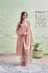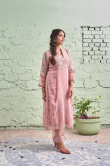 JAMUN ki tokri ( halki gulabi)- set of 2- kurta with embroidered buds & pant - Naaz By Noor
