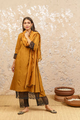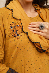 Mustard Embroidered Kurta With Pants (Without Dupatta)