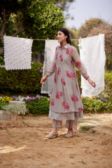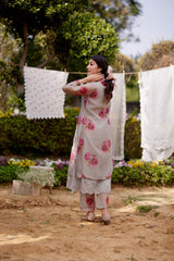 PINK ROSE fields- set of 2 ( kurta & pant) - Naaz By Noor