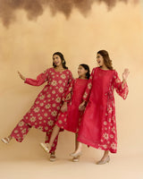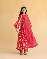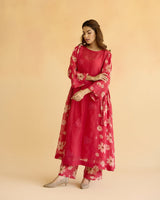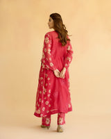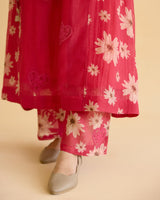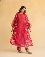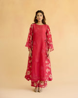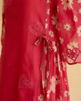 A floral kurta in fine chanderi styled with embroidered hearts in thread to complete the look.