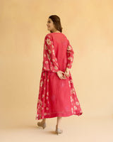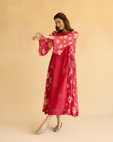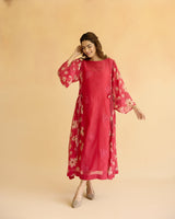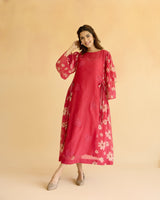 A floral dress in fine chanderi styled with embroidered hearts in thread to complete the look.