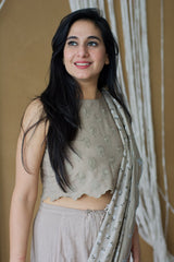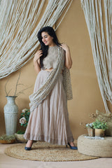 CAPPUCCINO ROSE CROP TOP WITH CRUSHED SHARARA AND DUPATTA