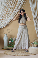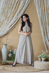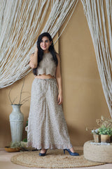 CAPPUCCINO ROSE CROP TOP AND PRINTED PLAZZO
