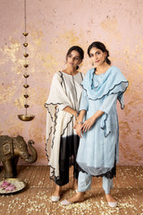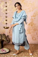 Blue Kurta With Straight Pants And Stole