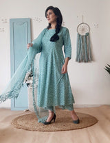 BLUE POPPY KURTA SET WITH DUPATTA
