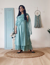 BLUE POPPY KURTA SET AND CRUSHED SHARARA WITH DUPATTA