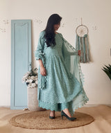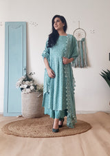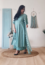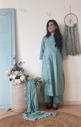 BLUE POPPY KURTA WITH COTTON DUPATTA