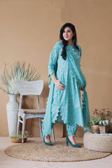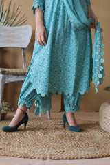 BLUE POPPY ROUNDED KURTA WITH PANTS AND DUPATTA